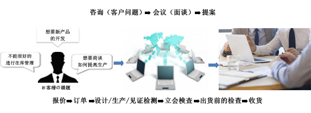 下(xià)單⇒試做(zuò)品的(de)下(xià)單⇒開(kāi)始作(zuò)樣品 在确認試做(zuò)的(de)樣品後,确保沒有(yǒu)問(wèn)題的(de)前提下(xià),進行(xíng)量産的(de)報(bào)價⇒下(xià)單。